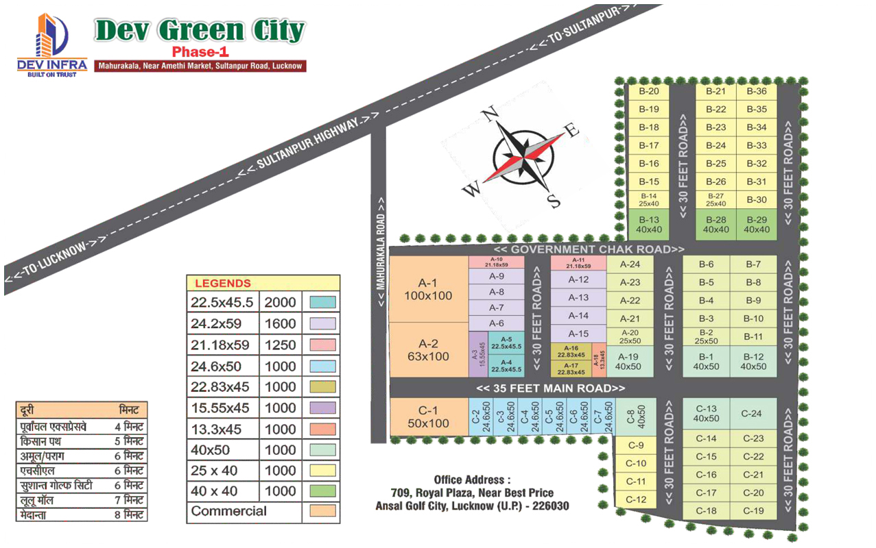DEV GREEN CITY PHASE - I At Near Rahmat Nagar Station, Sultanpur Road, Lucknow, Uttar Pradesh is a premium real estate developmant project in Lucknow, which has launched an ambitious residential project. This project has been designed in such a way the each resident is guaranteed a life time of privacy and an unhurried pace of life with a completely safe, green and pollution free environment. Indeed the property market in India real estate to habe not glimmered to the metro cities but to the capital of U.P has elevated to the country. Embraced of lush of greenery all around, signifies to experience the simple joy of life. DEV GREEN CITY PHASE - I is what modern living is all about.