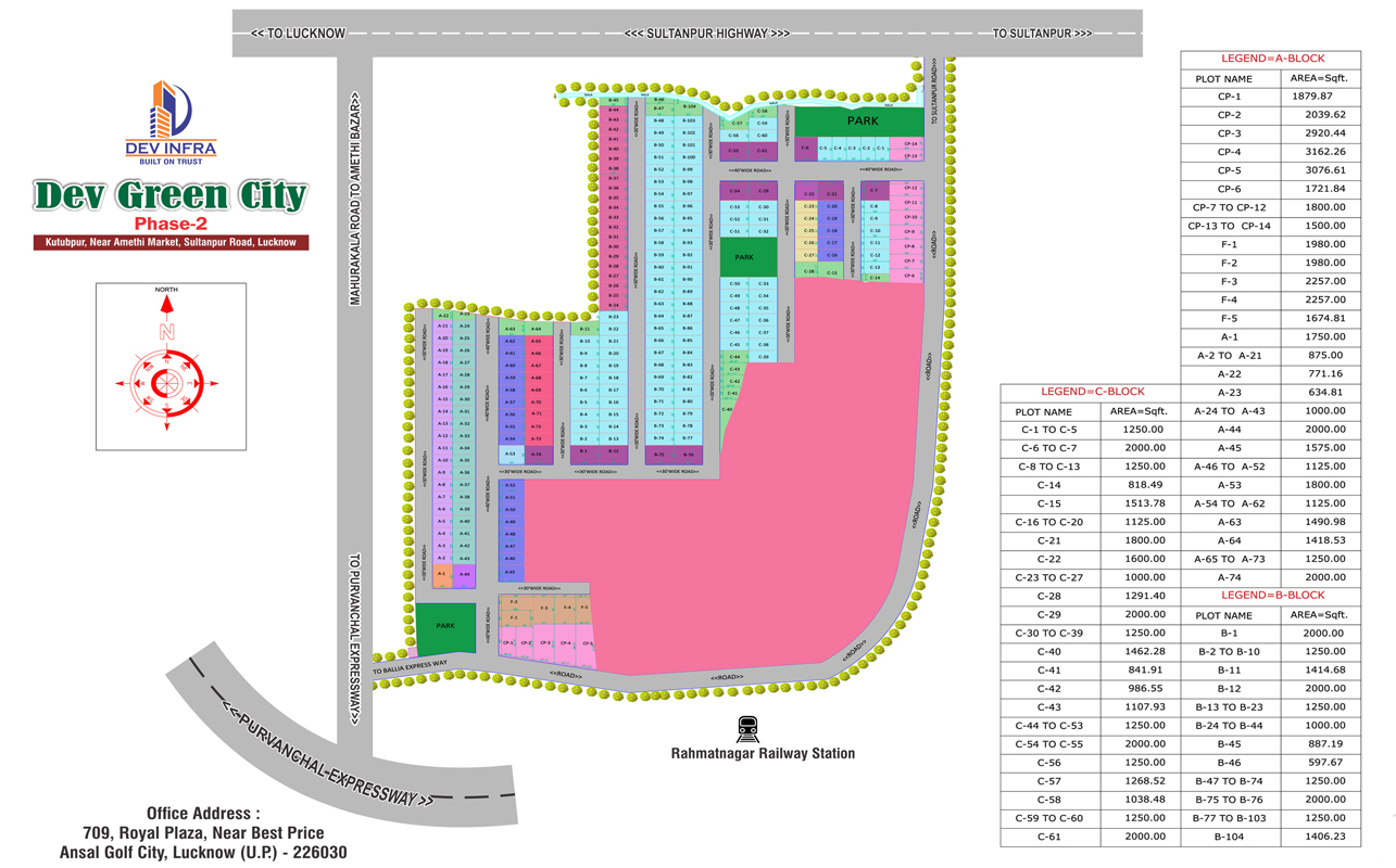 DEV GREEN CITY PHASE - II At Near Rahmat Nagar Station, Sultanpur Road, Lucknow, Uttar Pradesh is a premium real estate developmant project in Lucknow, which has launched an ambitious residential project. This project has been designed in such a way the each resident is guaranteed a life time of privacy and an unhurried pace of life with a completely safe, green and pollution free environment. Indeed the property market in India real estate to habe not glimmered to the metro cities but to the capital of U.P has elevated to the country. Embraced of lush of greenery all around, signifies to experience the simple joy of life. DEV GREEN CITY PHASE - II is what modern living is all about.